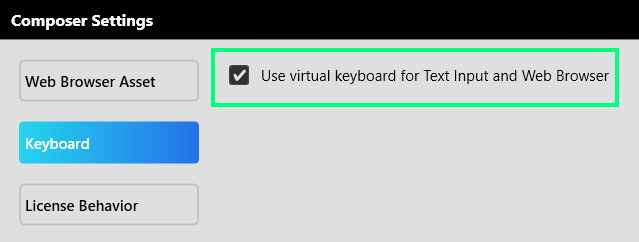In order to see the virtual keyboard while using Composer you will need to enable this in the settings:
